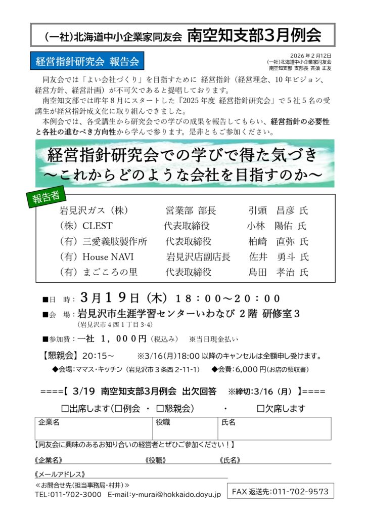南空知支部3月例会「2025年度経営指針研究会 報告会」